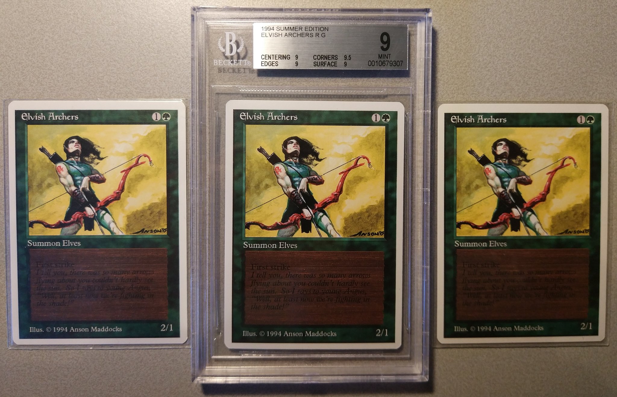 Je zou kunnen zeggen dat ik aardig op weg ben als verzamelaar van Elvish Archers. Die middelste is de enige BGS graded.